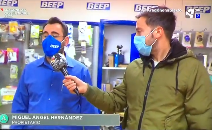 BEEP Zaragoza c/Pablo Picasso apareció el 23 de noviembre en el programa magazine de tarde de Aragón TV, Aragón en abierto, para informar sobre el aumento de las ventas de equipos y accesorios informáticos necesarios para el teletrabajo. A causa de la pandemia del coronavirus causante de la COVID-19, muchas empresas han apostado porque sus empleados trabajen desde casa.