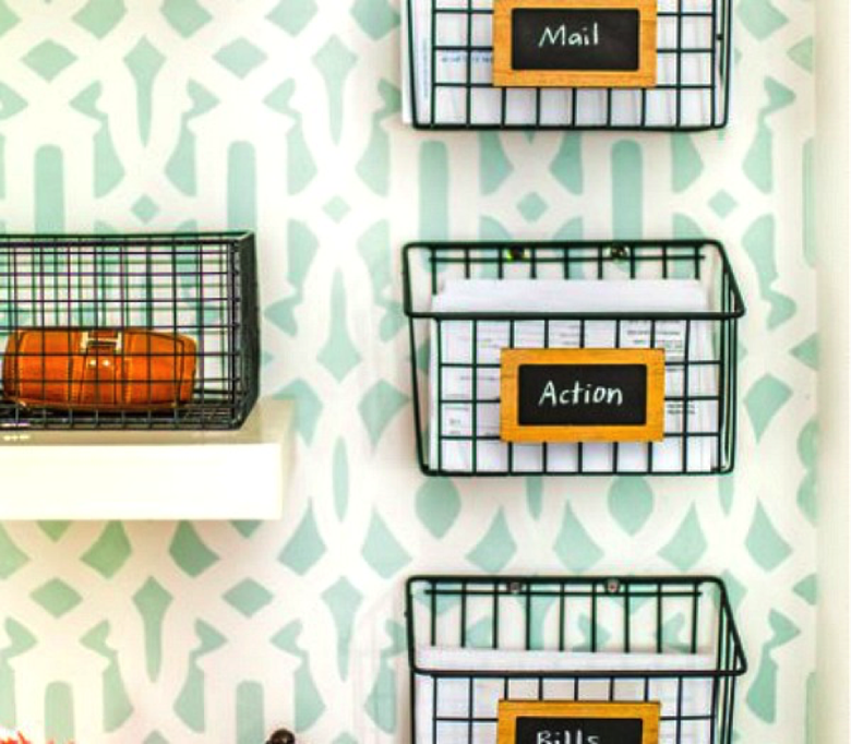 Si tienes espacio, puedes poner cestas archivadoras de alambre en las paredes.