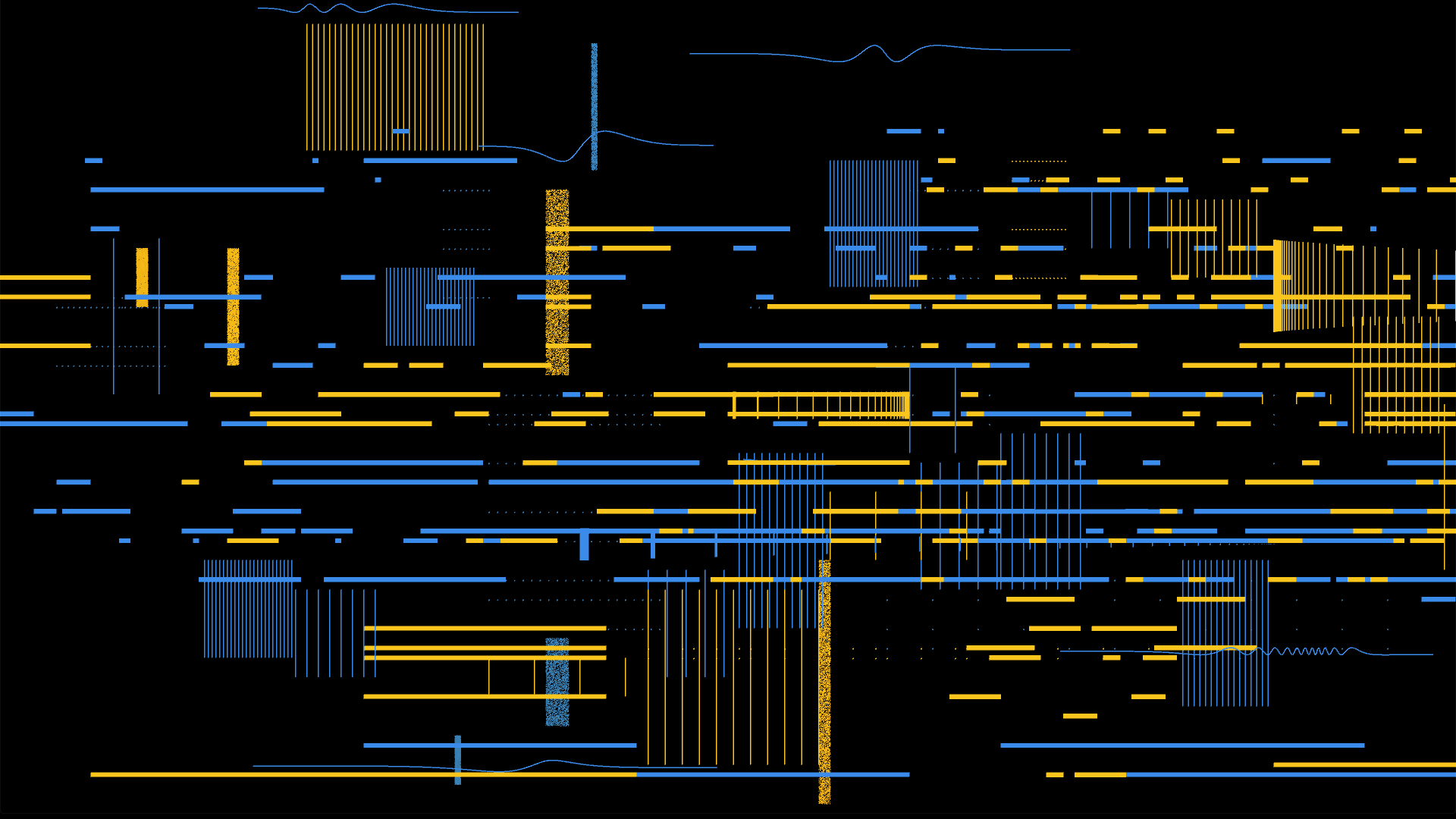 «Se trata de un sistema algorítmico de generación gráfica y sonora, inspirado en el arte procedural de Sol Lewitt o Vera Molnar, el universo gráfico de la Bauhaus y la búsqueda en notación gráfica de compositores como John Cage. En la muestra, el programa se plasma en una instalación audiovisual formada por un conjunto de pantallas y altavoces, inspirado en la exposición de cuadros o fotografías. En este caso, sin embargo, lo que se expone son imágenes digitales en alta resolución. Cada pantalla con su respectivo altavoz representa uno de los instrumentos musicales de un cuarteto, que va generando en tiempo real composiciones audiovisuales únicas, que nunca volverán a repetirse«.