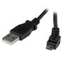 StarTech.com Cable Adaptador 1m USB A Macho a Micro USB B Macho Acodado en Ángulo hacia Arriba para Teléfono Móvil. Longitud de cable: 1 m, Conector 1: USB A, Conector 2: Micro-USB B, Versión USB: USB 2.0, Género del conector: Macho/Macho, Rango máximo de transferencia de datos: 480 Mbit/s, Contactos del conector chapado: Níquel, Color del producto: Negro